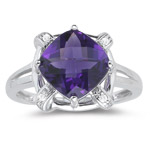This beautiful ring has a 8mm AAA quality cushion-checkered Garnet with two diamonds on each shoulder. Total Diamond Weight 0.09 Carats