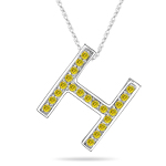 1/4 Cts Green Diamond U Initial Pendant in 14K White Gold(3461)