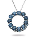 This entrancing London Blue Topaz Scroll Solitaire Pendant beholds an AAA quality Emerald Radiant London Blue Topaz prong set in Platinum. Approximate Gemstone Weight: 1.86 Carats. This pendant comes finished with an 18 inch 18K White Gold Singapore Chain.