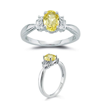 1/10 Ct Diamond & Yellow Sapphire Ring in 18K White Gold(4645)