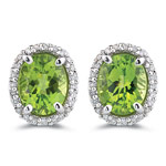 Diamond & 1.20 Ct 6x4 mm AA Emerald Peridot Stud Earrings in 14KW Gold(5549)