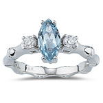 This beautiful Garnet and Diamond Ring highlights an AAA quality round Aquamarine, adorned with 22 tantalizing Diamonds prong set in 14K White Gold. Approximate Gemstone Weight: 0.57 Carats. Approximate Diamond Weight: 0.17 Carats. The gorgeous ring eman