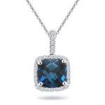 This eye-catching Black Diamond Cluster Pendant showcases an AAA quality round Black Diamond, accented with twelve round White Diamonds prong set in 14K White Gold. Approximate Black Diamond Weight: 2.39-2.92 Carats. Approximate White Diamond Weight: 0.36 Carats. An ultra gorgeous pendant to flatter you. This pendant comes finished with an 18-inch 14K White Gold Singapore Chain.