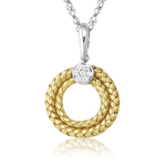 This extraordinary Two Tone Gold Cross Pendant is elegantly crafted in 14K Yellow and White Gold. Approximate Gold Weight: 1.60 Grams. This pendant comes finished with an 18-inch 14K Yellow Gold Singapore Chain. This exquisite designer pendant displays sheer elegance.