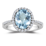 This beautiful Garnet and Diamond Ring highlights an AAA quality round Aquamarine, adorned with 26 tantalizing Diamonds prong set in 14K Yellow Gold. Approximate Gemstone Weight: 1.25 Carats. Approximate Diamond Weight: 0.20 Carats. The gorgeous ring ema