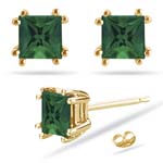 These magnificent Green Amethyst Stud Earrings are accentuated with an AAA quality princess-cut Green Amethyst each eight prongs set in 14K Yellow Gold. Approximate Gemstone Weight: 2.72 Carats. Wear these earrings to have heads turn with awe. Also avail