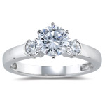 0.20 Cts Diamond & 3.18 Cts London Blue Topaz Three Stone Ring in 18K White Gold(241529)