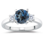 This beautiful London Blue Topaz and Diamond Ring highlights an AAA quality round London Blue Topaz, adorned with 28 tantalizing Diamonds prong set in 14K White Gold. Approximate Gemstone Weight: 1.42 Carats. Approximate Diamond Weight: 0.21 Carats. This classy ring looks really sophisticated.