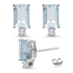 These mind-blowing London Blue Topaz and Diamond Stud Earrings display an AAA quality emerald-cut London Blue Topaz accented with eighteen round Diamonds each prong set in 14K White Gold. Approximate Gemstone Weight: 2.92 Carats. Approximate Diamond Weight: 0.33 Carats. Wear these earrings for a modern and chic look.