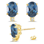 1.04 Ct Swiss Blue Topaz Stud Earrings in 14K White Gold(248423)