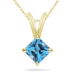 This extraordinary Swiss Blue Topaz Solitaire Pendant is ornamented with an AAA quality princess-cut Swiss Blue Topaz bezel set in 18K White Gold. Approximate Gemstone Weight: 2.83 Carat. Radiate magic with this lustrous pendant. This pendant comes finished with an 18-inch 18K White Gold Singapore Chain.