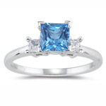 This awe-struck Three Stone Aquamarine and Diamond Ring highlights an AA quality emerald-cut Aquamarine, embellished with two appealing emerald-cut Diamonds prong set in 18K Yellow Gold. Approximate Gemstone Weight: 2.00 Carats. Approximate Diamond Weight: 0.33 Carats. A contemporary design expressing style.