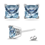 3.00 Cts of 7 mm AA Cushion Checker Board Aquamarine Scroll Stud Earrings in 14K White Gold(260046)
