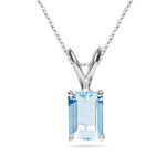 This splendor Aquamarine Pendant showcases an AA quality princess-cut Aquamarine adorned with three pulsating round Diamonds prong set in 18K White Gold. Approximate Gemstone Weight: 0.65 Carats. Approximate Diamond Weight: 0.06 Carats. This pendant comes finished with an 18-inch 18K White Gold Singapore Chain.