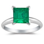 This tantalizing Natural Emerald Scroll Ring is highlighted with an AAA quality emerald-cut Natural Emerald Solitaire prong set in 14K White Gold. Approximate Gemstone Weight: 0.37 Carats. A perfect choice for a woman who likes simple things in life.