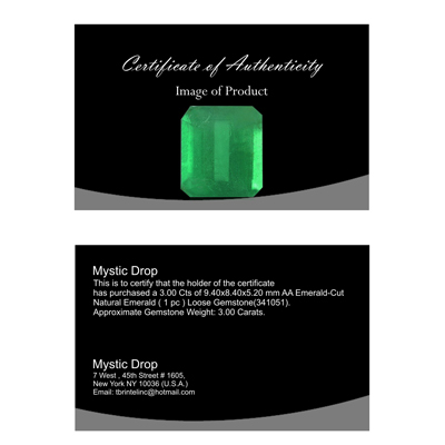 This is an AA quality Emerald-Cut Natural Emerald measuring 9.40x8.40x5.20 mm. Approximate Gemstone Weight: 3.00 Carats. * AA graded emeralds have a very nice medium dark color tone to them, and are opaque to slightly transparent with a little bit of crystal.(Please keep in mind that inclusions are typical for emeralds, no inclusions typically indicate that the emerald is not genuine).