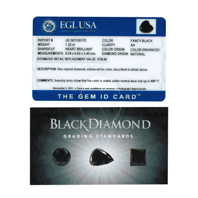 This is an AA quality Loose Heart Black Diamond measuring 6.24x6.63x3.45 mm. Approximate Black Diamond Weight: 1.22 Carats.