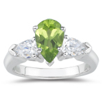 This splendor Peridot Ring displays an AAA quality emerald-cut Peridot accented with six Diamonds prong set in 14K White Gold. Approximate Gemstone Weight: 0.61 Carats. Approximate Diamond Weight: 0.30 Carats. Impress her with this exuberant ring.