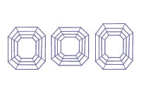Baguette is a slender rectangular cut like an emerald cut, but is sharper at the corners. Baguette derives its name because of its resemblance to a bread loaf in French. The proportions can be played with; however the optimum length to width ratio should 1.5:1.00, (1.5-2.5 length is also acceptable). The Baguette accentuates a diamond's luster, whiteness, and clarity though downplaying its fire. This cut was a rage during the Art Deco period. Baguette diamonds are usually used as side stones to accompany different shaped diamonds, unusual in large sizes. |